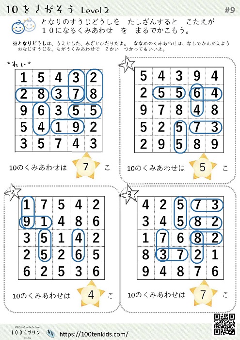 ただ、「足すと10になる組み合わせ」はたったの5通り。ただのドリルでは、すぐにつまらなくなってしまって繰り返し練習できません。だから、子どもたちが大好きなゲーム形式にしてみました。